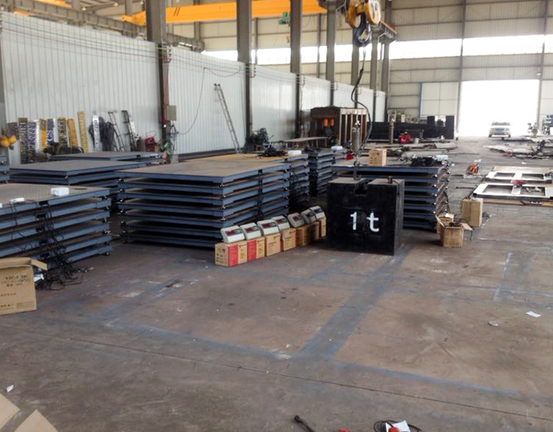 電子地磅安裝師傅正在加快電子汽車衡的安放工作